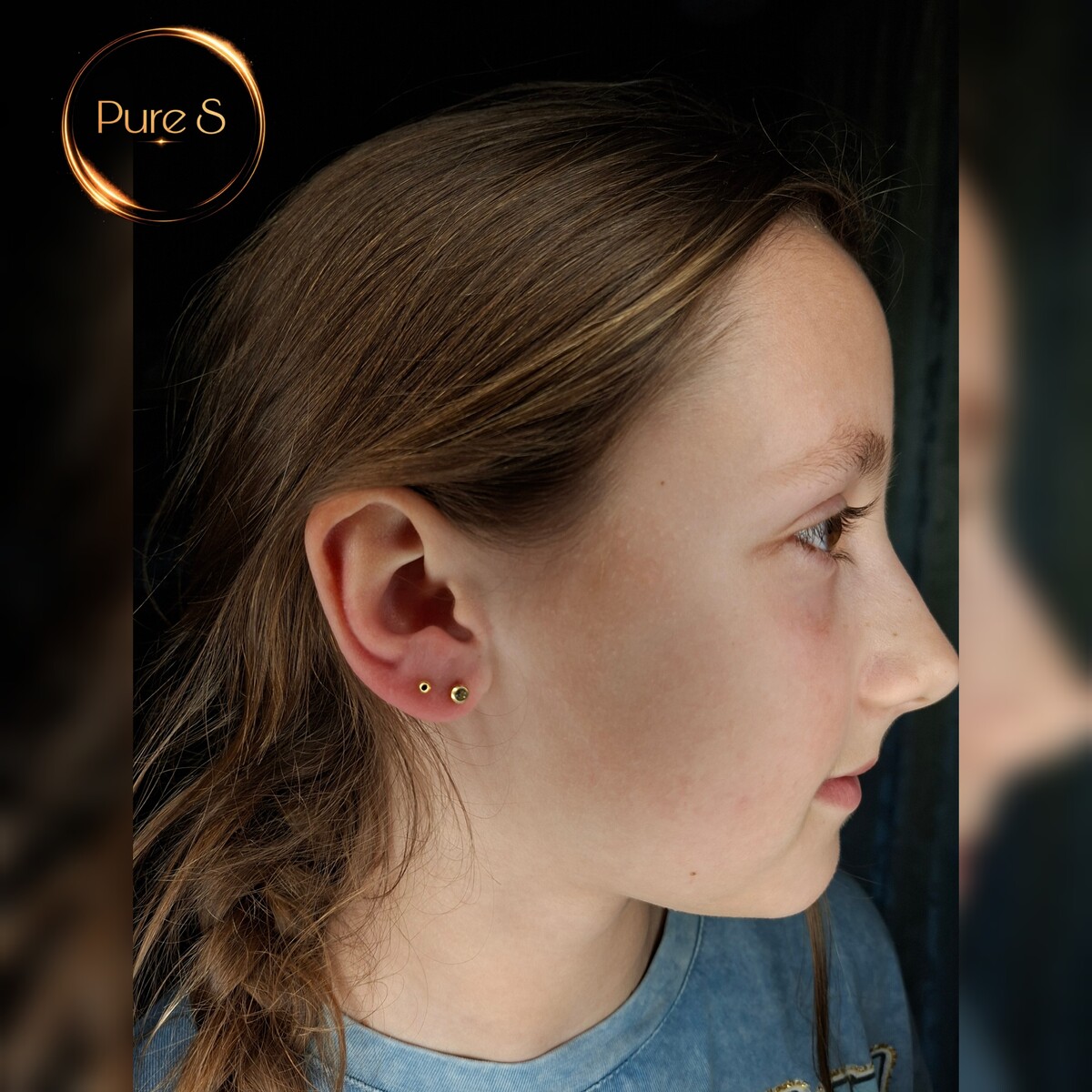 We werken met het bekende Studex-systeem, dat speciaal ontwikkeld is om op een veilige, hygiƫnische en snelle manier oorbelgaatjes te prikken. De oorbellen die we gebruiken zijn gemaakt van chirurgisch staal, wat ideaal is voor een goede genezing van het oor.